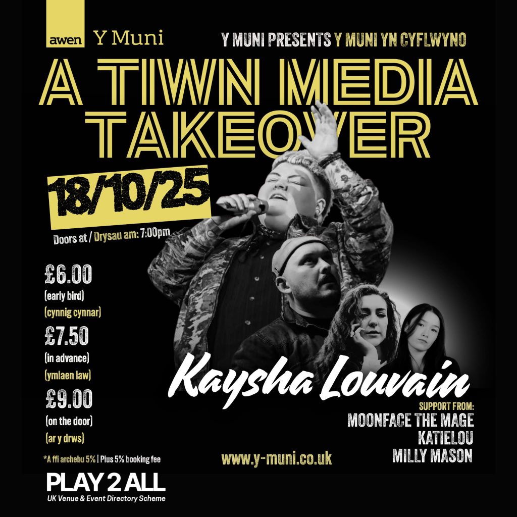 Delighted to announce latest addition to the Play 2 All UK Venue & Event Directory Project will be host of the November Feature. Kaysha Louvain was an early supporter of the scheme & helped to set up the Wales launch in March as well as featuring that event in Music Magazine ‘Tiwn’.
